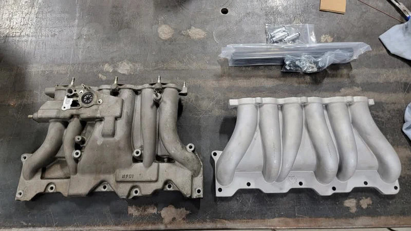 This unit is 40mm lower than the OEM LIM, to accommodate more hood clearance for engine swaps. This also shifts the powerband up slightly. Additionally secondary port runners are 8% larger for increase airflow. These will bolt to the OEM upper intake manifold( we do advise port matching the runners if using the OEM UIM; secondary runners only by 2mm). Mounting hardware/o-rings are included. This unit requires studs/nuts on the insider runners( supplied ).
