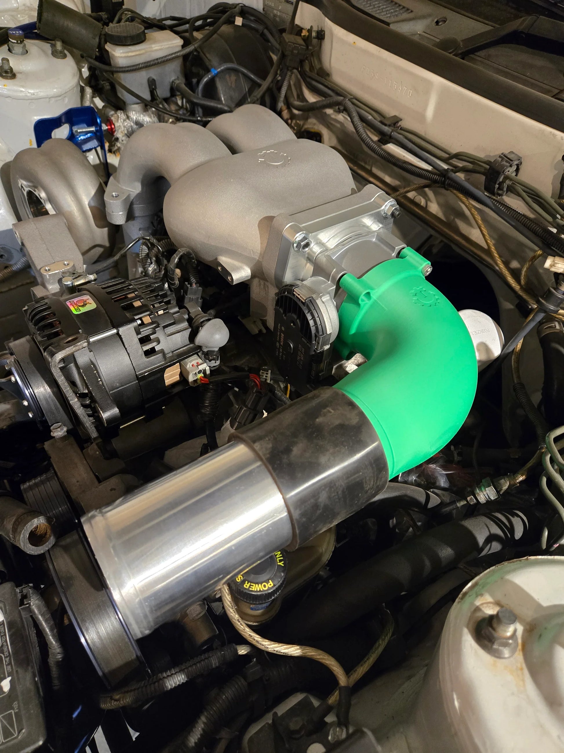 Turblown DBW elbow for both 74mm and 82mm haltech ( Bosch) throttle bodies. O ring connection with 4 allen head bolts at TB side, 3" hose connection for inlet. This is a cast bare aluminum unit.